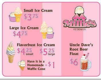 Up to 3 scoops of Millie's famous Ice Cream in a pint container.